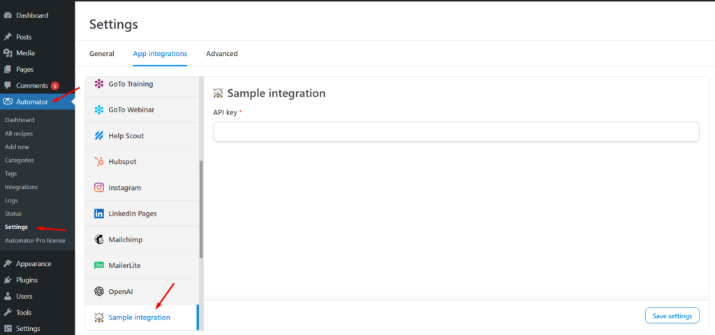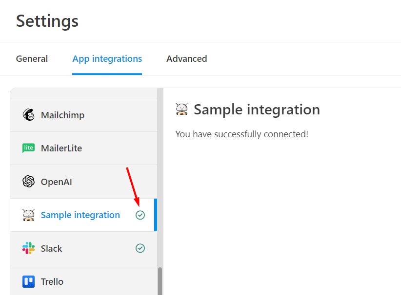 Now your plugin can use the sample_api_key option anywhere to connect to your services and you can use that option to check if your integration is connected or not.